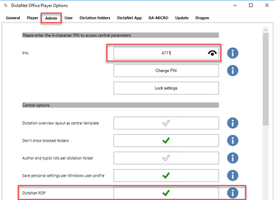 Open the DictaNet settings and navigate to the "Admin" tab. Check the box "DictaNet RDP".
