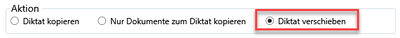 Es werden nur die Dokumente zum Diktat kopiert, sodass das Diktat in der Quelle bleibt