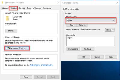 If another user (e.g. second typist) wants to use the same profile, the steps should be repeated. There should be as many network shares as there are users using the same server profile. Typically there is one share per typist.