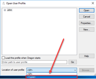 4. The typist should then load the profile under the Display Name which corresponds to this network share.