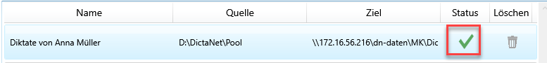 - Der DictaFlow Dienst wird diese Diktate abholen und in den Ziel-Ordner verschieben.
