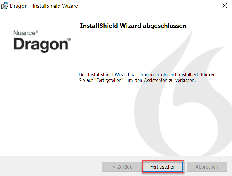 Die Installation ist abgeschlossen und kann mit Klick auf „Fertigstellen“ beendet werden.